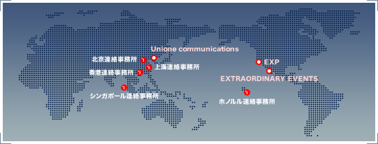 エンターテイメント文化と人材の集積地である香港をヘッドオフィスに、北京・上海・シンガポールの各拠点をネットワーク。すでに2002年10月には韓国エレクトロニクスショーで日本家電メーカーのブースを、同年11月には中国・広州モーターサイクルショーの日本自動車メーカーのブース運営を行うなどの実績を積み上げています。現地企業のベンチマークと業務提携。同社は香港のナンバー2のイベント会社、バンパシフィック解散後、主要メンバーらによって結成。中国各地域の許認可・慣習に精通したプロ集団として知られています。
